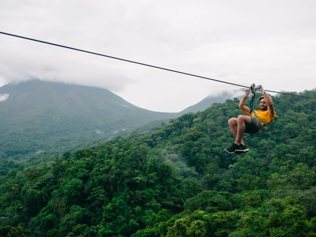 Soar above Monteverde or Arenal rainforest on cables with views of volcanoes and wildlife.