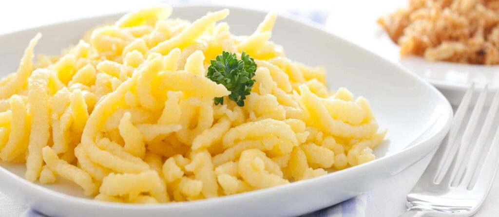 Soft egg noodles, often served with cheese or gravy.