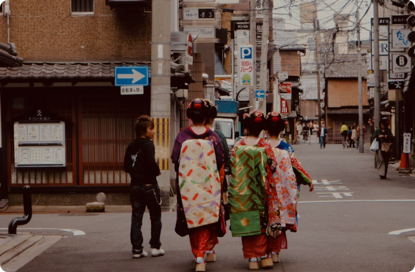 Tea ceremonies, calligraphy, and traditional arts like kabuki; vibrant pop culture with anime and J-pop