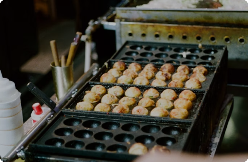 Try street food like takoyaki and okonomiyaki